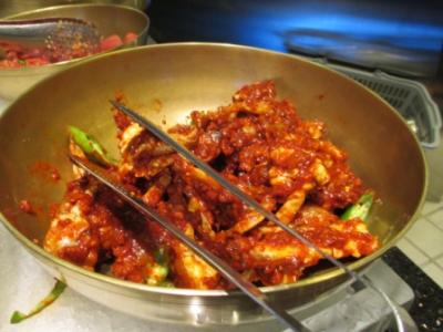 辛いものが得意ではない人は、タテギ(赤い唐辛子たっぷりの香辛料)をまず取り除き、自分に合った辛さに少しずつ入れながら調節します。