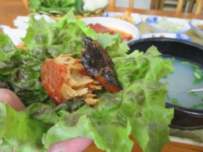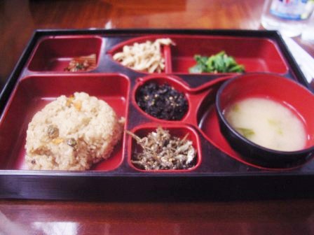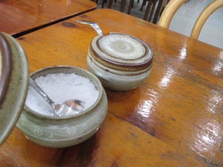 シジミ汁の味付けは薄めなので、テーブルに備え付けの塩で味を調節します。
