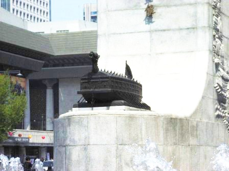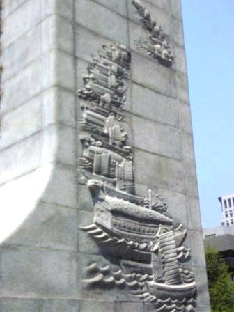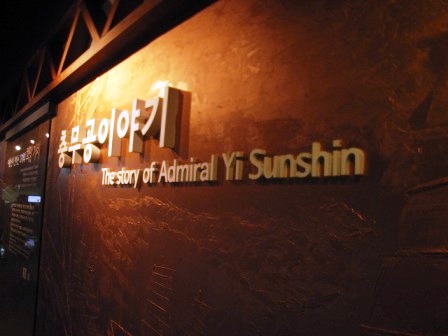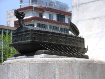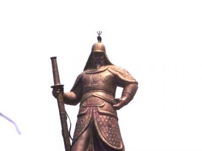慶長・文禄の役の末期、露梁海戦で13隻で133隻(一説には300隻)の日本船を打ち破った李舜臣の銅像です。