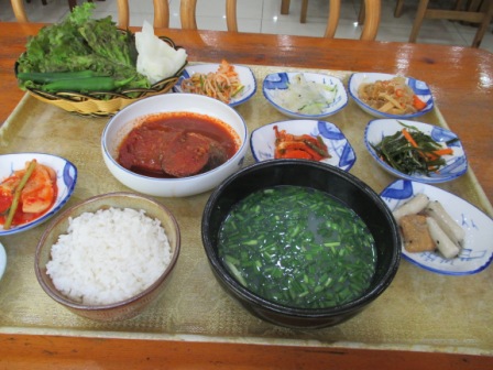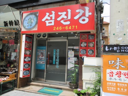 地下鉄南浦駅の7番出口(エレベーターあり)から出て、北に3分ほど歩き、利率がいいと評判のヨンジン両替店から左に曲がり、少し歩くと右手にあります。