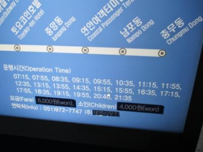 釜山駅への最終バスは9:30。遅い時間のバスがないのが残念です。