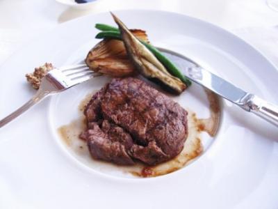 舌平目、炭火焼ビーフステーキ、チキンの中から炭火焼ステーキを選択しましたが、とても柔らかくソースもおいしかったです。