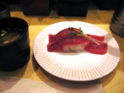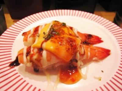 お寿司は回転寿司で、なんともユニークな創作寿司・・・。でも、ちゃんと酢飯だからなぁ・・・。