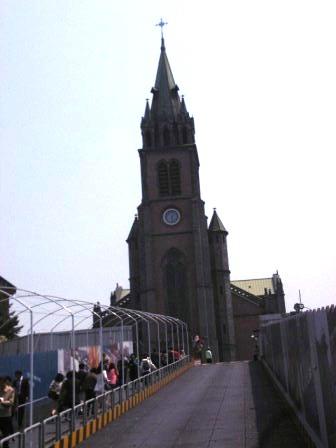 小高い丘に立つカトリック大聖堂。歴史を感じる建物です。