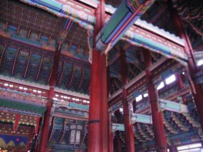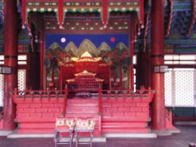 王座の後ろにある屏風は日月五岳図。五山と月、太陽が描かれています。- 旅行時期