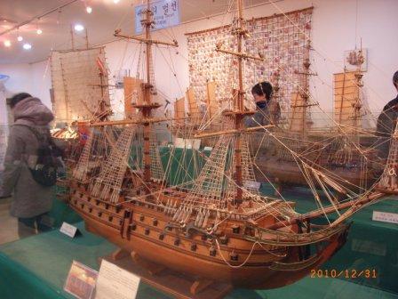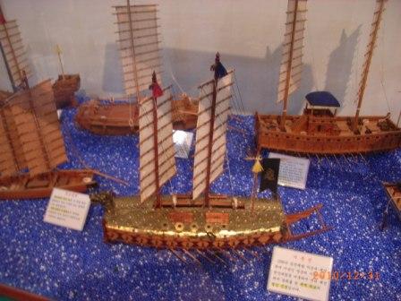 コロンブスの乗ったサンタマリア号、ルイ14世時代のフランス船ミラージュ号、スペインの無敵艦隊、日本と朝鮮を結んだ朝鮮通信使船(対馬を経由して大阪に上陸したそうです。)秀吉の文禄慶長の役(朝鮮出兵)で日本軍から国を守った忠武公 李舜臣(イ・スンシン)の亀船など、歴史に興味のある人にはたまらない展示です。
