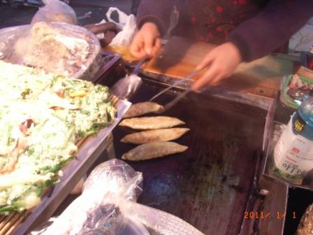 屋台でのお勧めは、大きな餃子。とてもおいしかったですよ。- 旅行時期