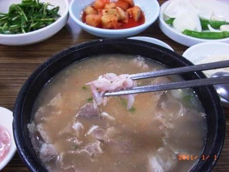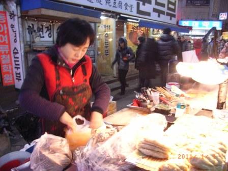 安くてうまいテジクッパの店と、いろいろな屋台が並ぶモクジャゴルモク
