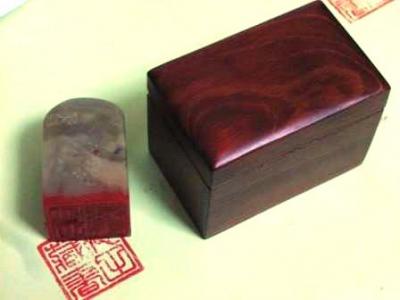3×3cm、青灰色の石で、紫檀の箱にいれてくれて値段は2500円くらい。