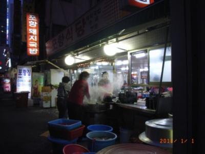 テジクッパの店は昼間もやっていますが、屋台は夕方から出るようです。