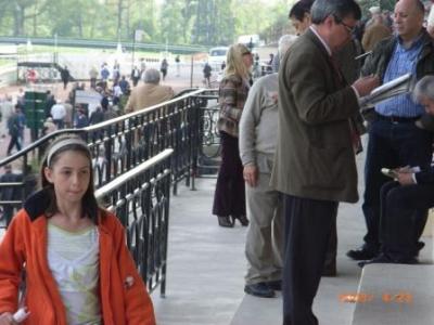 馬券は最低2ユーロから。プログラムがあちこちにおいてありますので、これで旗手の服色をチェックし、過去の成績を確認してください。