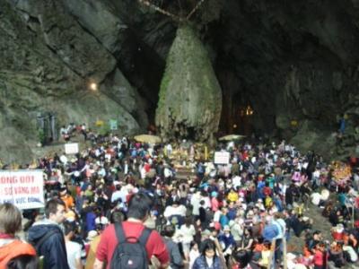 香寺は鍾乳洞の中にあり、多くの人がお参りに来ていました。