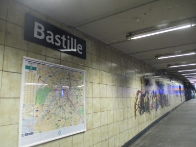 バスティーユ駅の1番線の乗り場からは、サンマルタン運河を見ることができます。