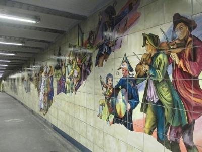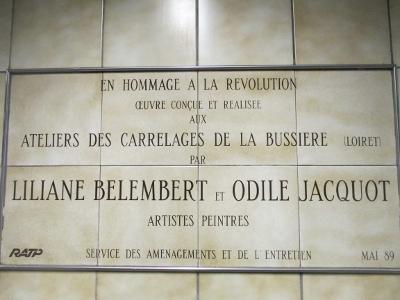 壁にはフランス革命当時の逸話を物語るタイルの壁画が並んでいます。