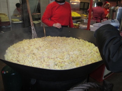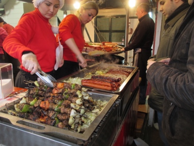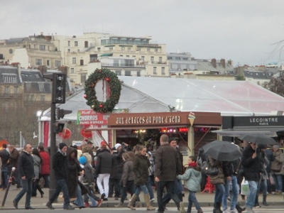 パリの冬はとても寒いですけど、ここでは温かい食べ物や、ヴァンショーなどが売られていて、ぱくつきながらお店を見て回るのはとても楽しい。