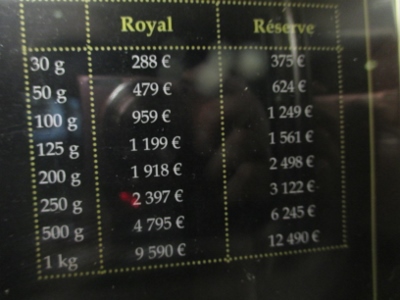 4年前に来たときには確か150ユーロだったような記憶があるのですが、キャビアが輸出制限されるようになってずいぶん値上がりしたんですね。