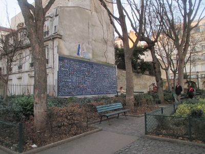 西側にジュテームの壁がありますよ。あらゆる言語で「愛している」と書かれたオブジェです。