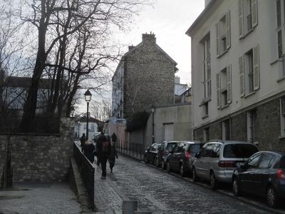 テルトル広場から西に延びるノルヴァン通りには、おしゃれなショップやカフェが並んでいます。西の端から道を眺めると、そこはまさにユトリロが描いた光景。