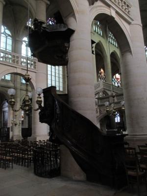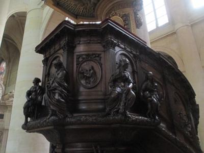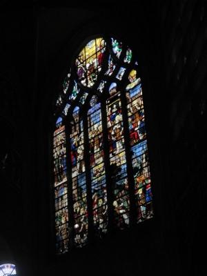 ステンドグラスの色彩がとても美しく、説教壇の彫刻や、中央内陣の正面仕切りの彫刻も必見です。