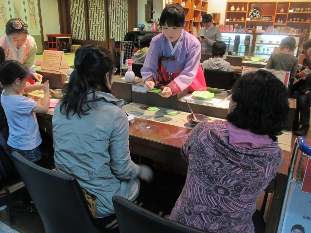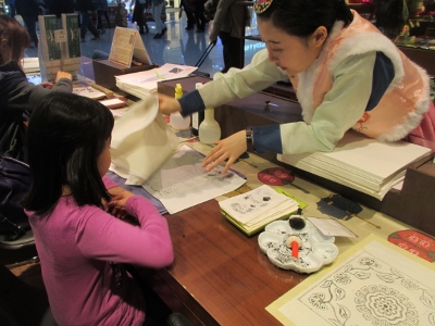 さまざまな韓国伝統文化体験が無料でできるので、トランジットの暇つぶしによいです。子供さんが多いですね。