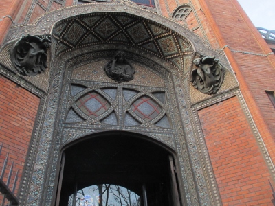 外壁は赤いレンガで覆われていますが、これも教会としては大変珍しい。
