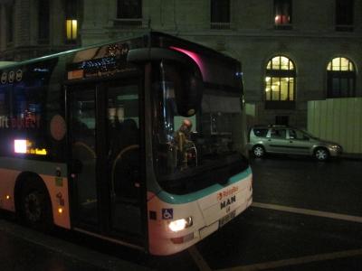 ターミナル1→2BD(PorteD11前)→2AC(PorteA9前)→ターミナル2EF→ターミナル3 →パリ市内へ・・・という順番で空港を回ってきますが、到着便が立て込んでいるときには極たまにですが満員で乗れないこともあります。こういう時は空港シャトルバスで2BDターミナルに行って乗ることも考えます。