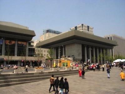 世宗文化会館(セジョンムナフェグァン)は光化門広場のちょうど世宗大王の銅像前に有る建物。