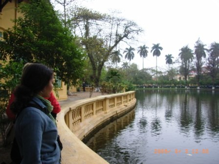 その前の池にはホーチミンが大変かわいがったという鯉が群れています。