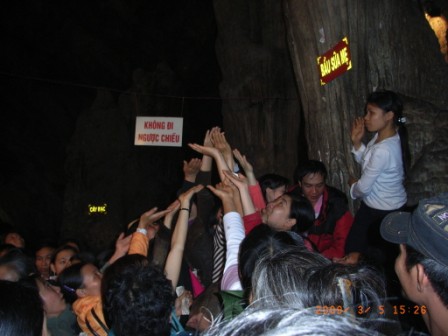 本殿は薄暗い洞窟の一番奥にあるのですが、ここにいっせいに人々が詰め掛けます。