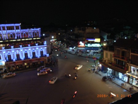 ホアンキエム北の交差点が見えるのですが、ここからベトナムの交通事情を垣間見ることができます。