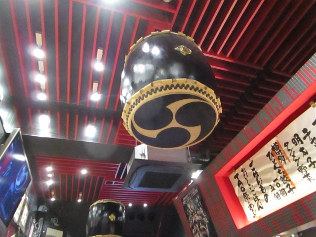 IPPUDO TAO FUKUOKA 店内に太鼓がつるされています