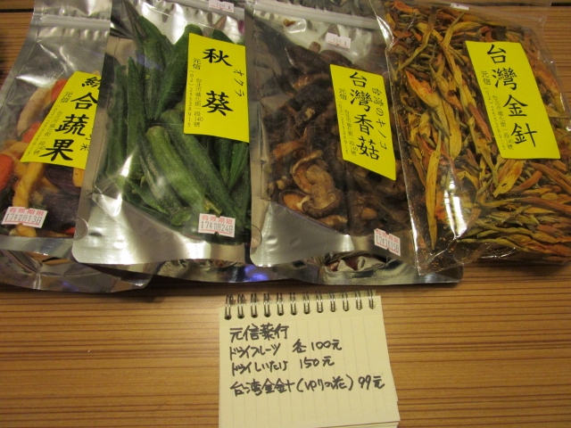 ドライフルーツもいろいろ試食させてもらいました。マンゴーは1斤(600g)530元。
