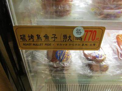 ここのカラスミは色もいいし保存状態もよい・・・・でも100g770元はちょっと高いなぁ。