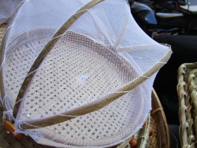 竹製のフードカバーをランプにアレンジして展示していました。