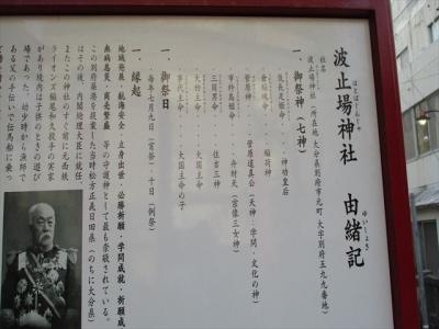 拝殿の正面にの「波止場神社」という木彫りの額は松方正義候の書。