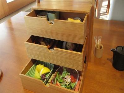 朝食が岡持ちに入っていて、これが大変おしゃれ。だし巻きが特に気に入りました。