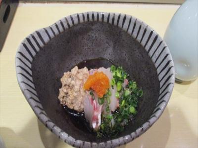 ひとりでもコースで注文ができるのもうれしい。最初にコースとは別に、どうしても食べたかったカワハギの肝和えを注文。濃厚な肝と角のない大分産のポン酢で刺身を和えて食すのですが、これが絶品でした。