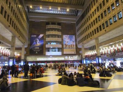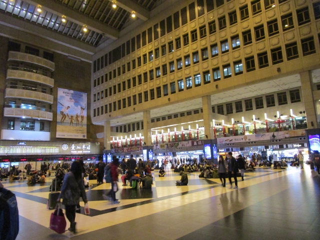 台北駅の中央はとても広い広場があって、ここで床に座ってリラックスする地元の方々がとても印象的でした。