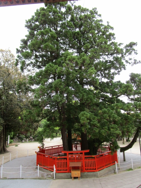 香椎宮に凱旋時、身に着けていた武具を埋め、そこに、鎧の袖に付けていた杉の枝を植えたのがこのご神木。