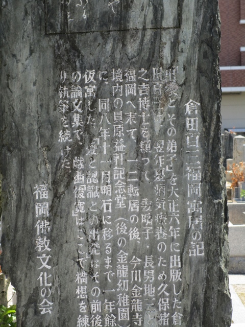 金龍寺の境内にひっそりとたたずむ記念碑。