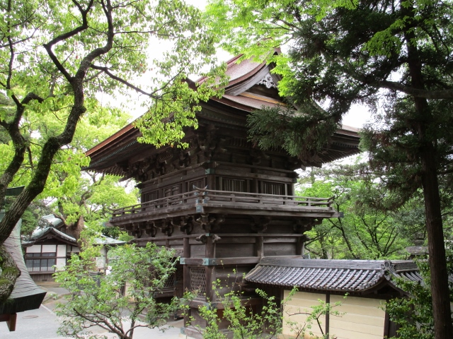 とても古く美しい楼門、神功皇后のお手植えお神木「綾杉」。神功皇后が扇を初めて作った(なんでも蝙蝠の羽からイメージされたのだとか)ことから扇の供養がされる扇塚。