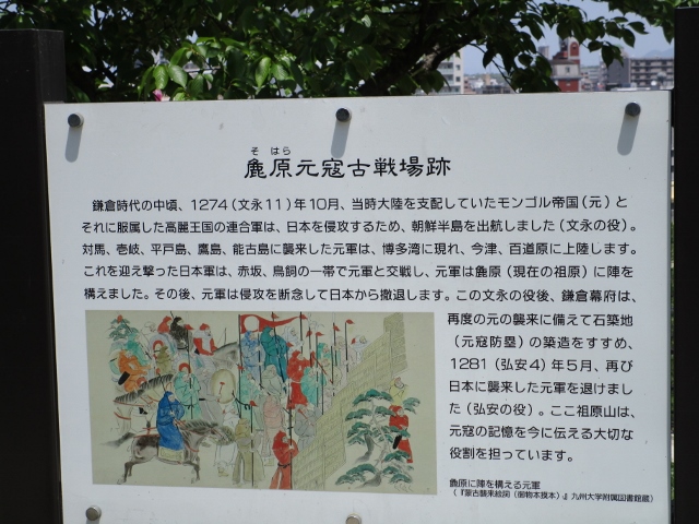1274年の文永の役のときに元の軍隊が祖原山に本陣を敷きました。この時は日本軍は大変苦戦したそうです。