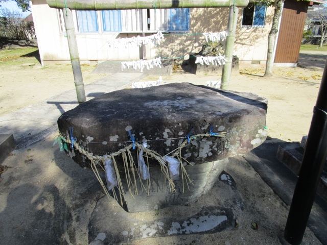 境内には「力石」という2個の丸い石があり、昔は若者がこの石で力試しをしたそうです。