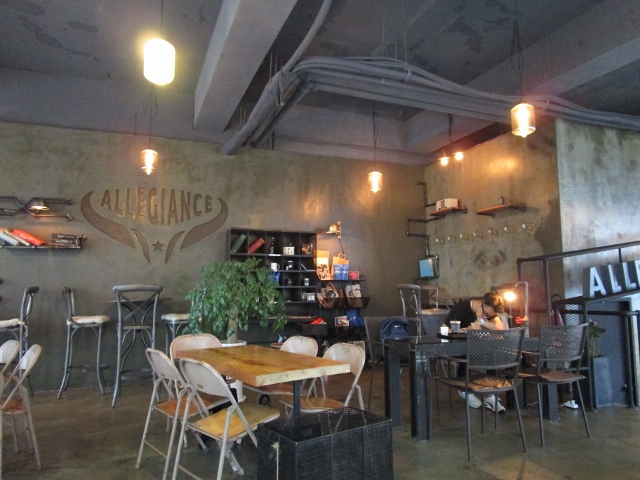 とても高い天井で、開放的。内装がとても落ち着いた感じでリラックスできる。