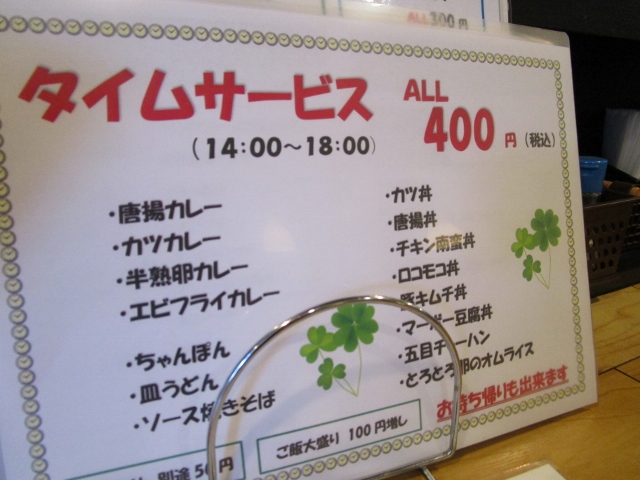 込み合う時間を外すと、なんと400円でランチが食べられます。