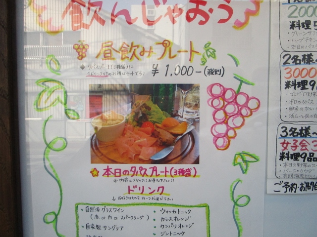 名前の通り自然派のワインをそろえているお店ですが、ここのおすすめは昼飲みセット