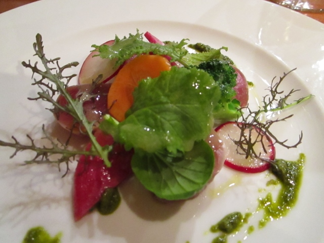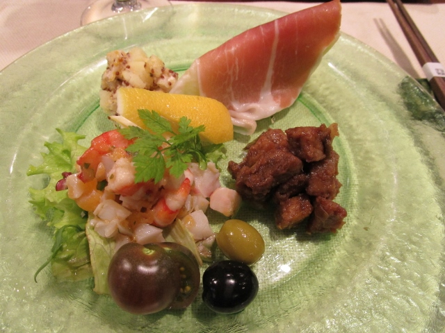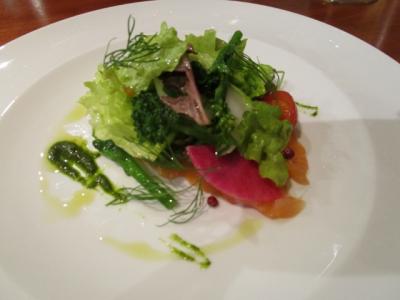 メニューを選ぶときに、パスタを猛プッシュしていらしたので、パスタが自信作なのかもしれませんが、この時はさっぱりしたものがほしかったので前菜と鯛の料理を頼みました。