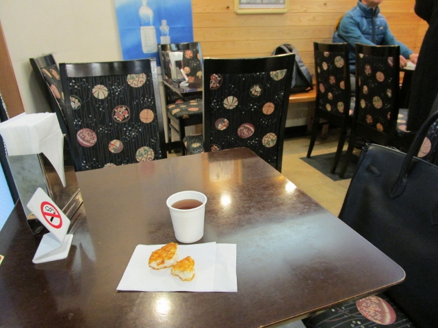 お買い物をすると、店内でほうじ茶と新作お菓子のサービスをしてくれました。