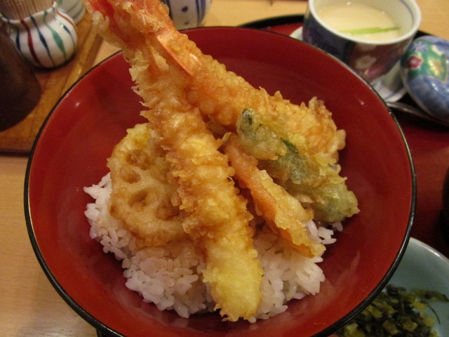 揚げたてサクサクのエビの天ぷらが2匹、お味噌汁とおつけもの、茶碗蒸しがついて780円はとてもリーズナブルだと思います。