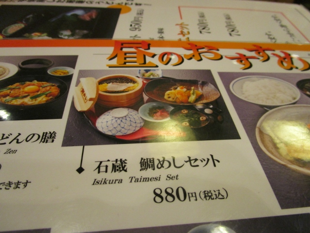 石蔵鯛めしセットは880円、鯛めしと天ぷらのランチは880円、昼定食は1080円、天丼とざるうどんのセットは980円と財布に優しい価格です。- 旅行時期